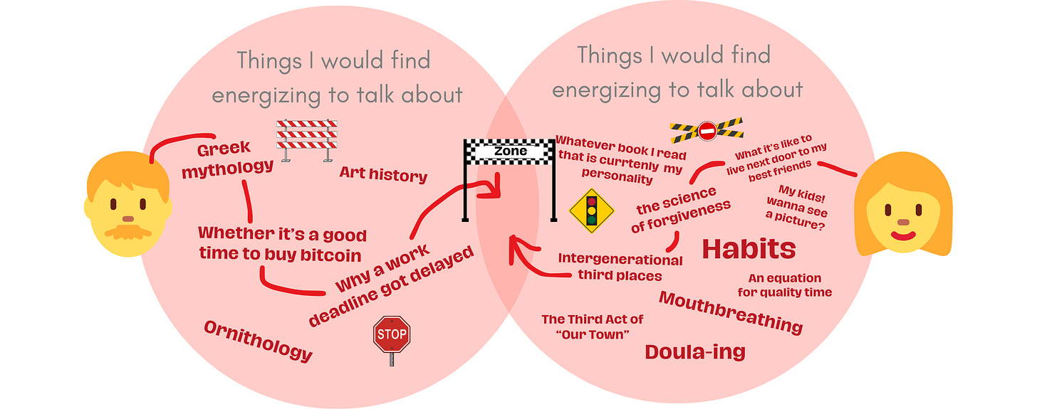 For example, my best friend and I have roughly zero ramp-up time. We can jump into a conversation we’ll find energizing fairly quickly. We know the roadblocks. And we usually avoid them.