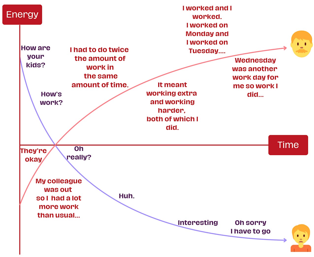 Stop, Affirm, Redirect: If you’ve reached a dead-end and your energy is draining, pause and redirect the conversation. Silence can feel awkward but taking a beat to pivot gets you both on a better track. You can affirm something they said if that feels authentic and move the conversation elsewhere (see the first two tips).